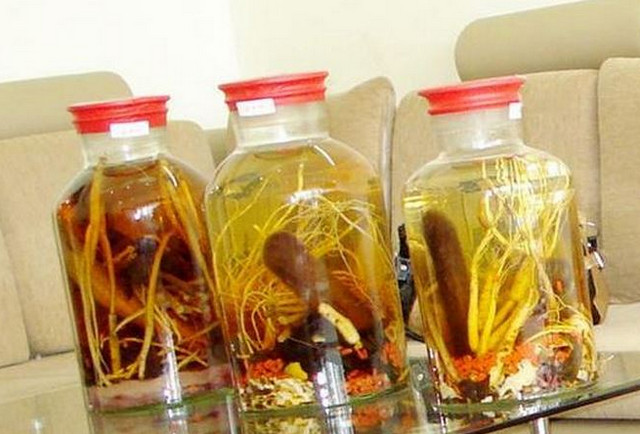 Rượu nhung hươu, nhân sâm: nhân sâm 30g, nhung hươu 10g, rượu trắng loại ngon 1,5 lít, đường phèn 500g. Cho các loại thuốc trên vào bình thủy tinh, đổ rượu trắng vào đậy nắp kín. Sau 2 tháng đem ra là dùng được.