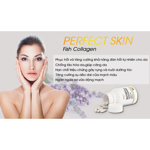 - Collagen trong Perfect skin sẽ giúp cho “lớp đệm” ở da được xây dựng và củng cố với đầy đủ tính đàn hồi và sự săn chắc, giúp trẻ hóa và ngăn ngừa tối đa sự lão hóa da, duy trì vẻ đẹp tươi trẻ , rạng rỡ