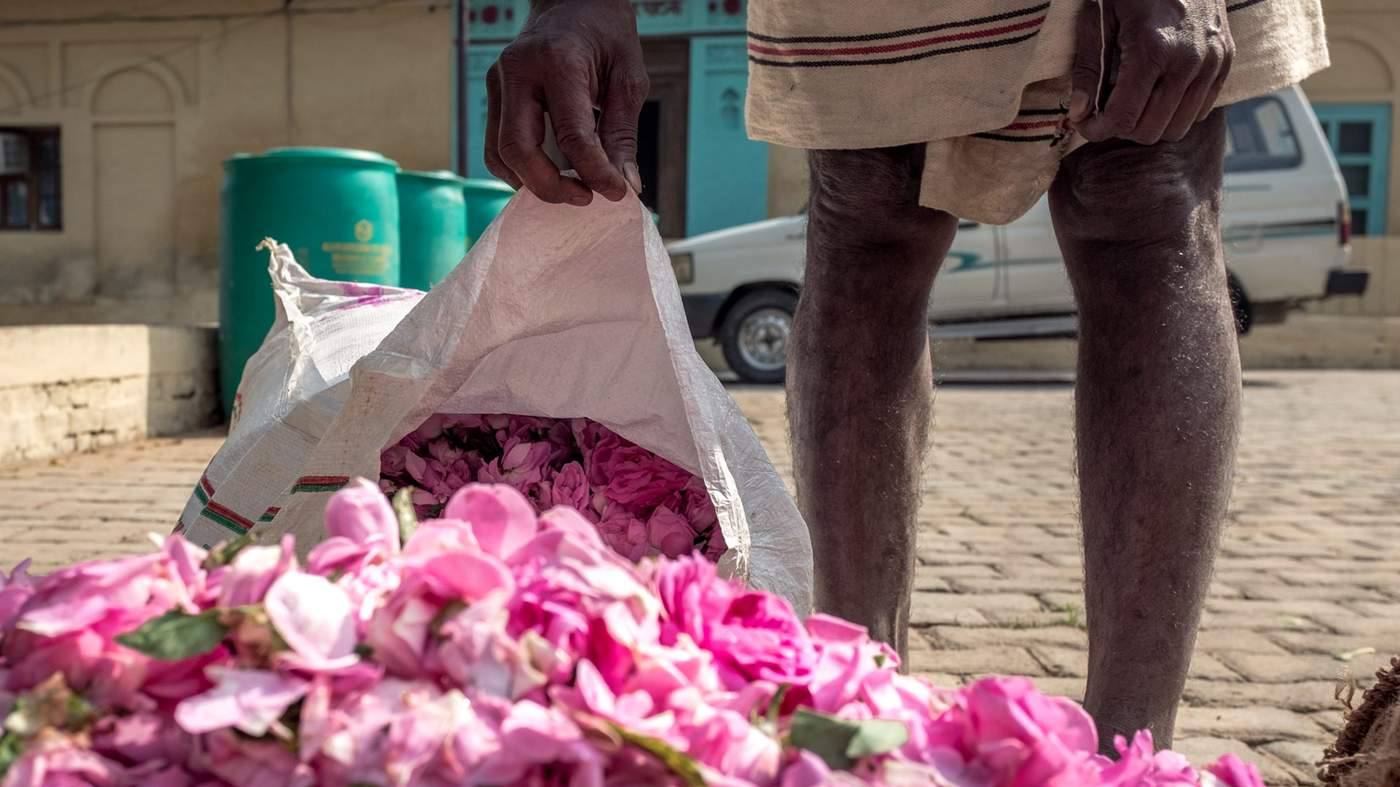 Ngay từ lúc bình minh chưa ló dạng, các công nhân đã phải dùng tay thu hoạch từng bông hồng damask, cho vào bao tải lớn và vận chuyển ngay đến xưởng để chưng cất luôn trong ngày. Tại xưởng, họ sẽ đổ hoa hồng vào từng nồi đồng lớn và một chút nước lạnh rồi dùng lửa đun suốt 4-6 tiếng liên tục. Hơi nước nóng sẽ khiến hoa tiết ra tinh dầu, sau đó ngưng tụ lại và chảy vào chén đựng thông qua một ống tre.
