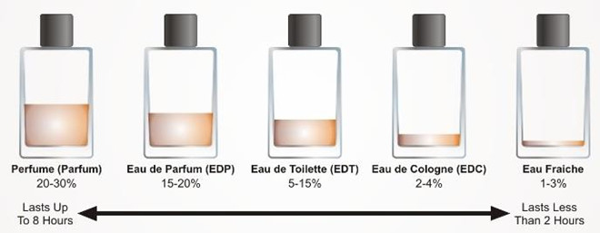 Mỗi chai nước hoa thông thường sẽ có ký hiệu EDT (eau de toilette) hoặc EDP (eau de parfum) trên vỏ chai hay gắn liền phía sau tên của một dònnước hoa nào đó nhằm chú thích về nồng độ tinh chất có trong chai.