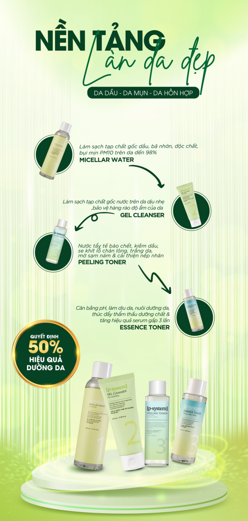 Chế độ ăn uống có tác động lớn đến làn da. Hạn chế đường, dầu và thức ăn nhanh chóng để giảm bã nhờn. Nhiều rau xanh, trái cây và nước uống lành mạnh giúp da sáng hơn.