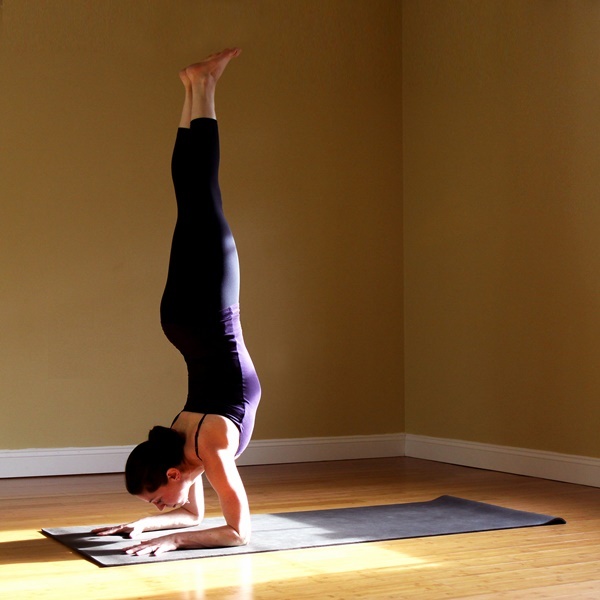 10. Hãy trồng cây chuối khoảng 30 giây mỗi ngày. Bạn có thể gác chân lên tường hoặc ghế nếu muốn. Tư thế này giúp máu lưu thông xuống mặt, giúp khuôn mặt hồng hào và tươi trẻ mỗi ngày.
